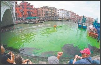 El color verde fosforescente que tiñó una parte de las aguas del Gran Canal de Venecia el domingo se debió a la presencia de fluoresceína, una sustancia no tóxica que se usa generalmente para pruebas en redes de aguas residuales, anunciaron ayer las autoridades locales de la ciudad italiana.
