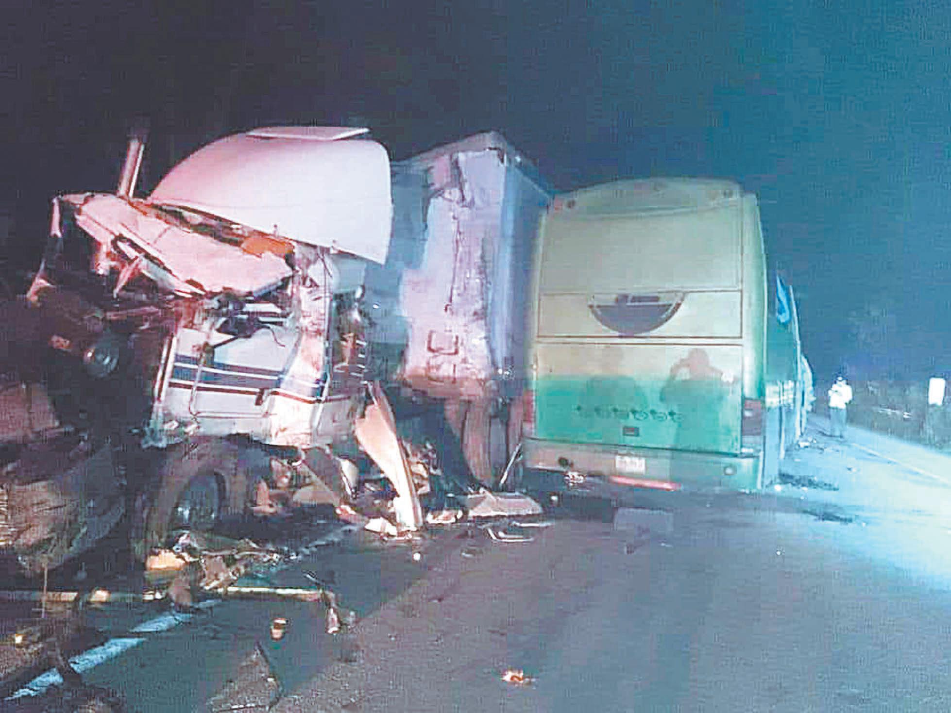 Deja ocho muertos colisión entre autobús y tráiler por falla en los frenos