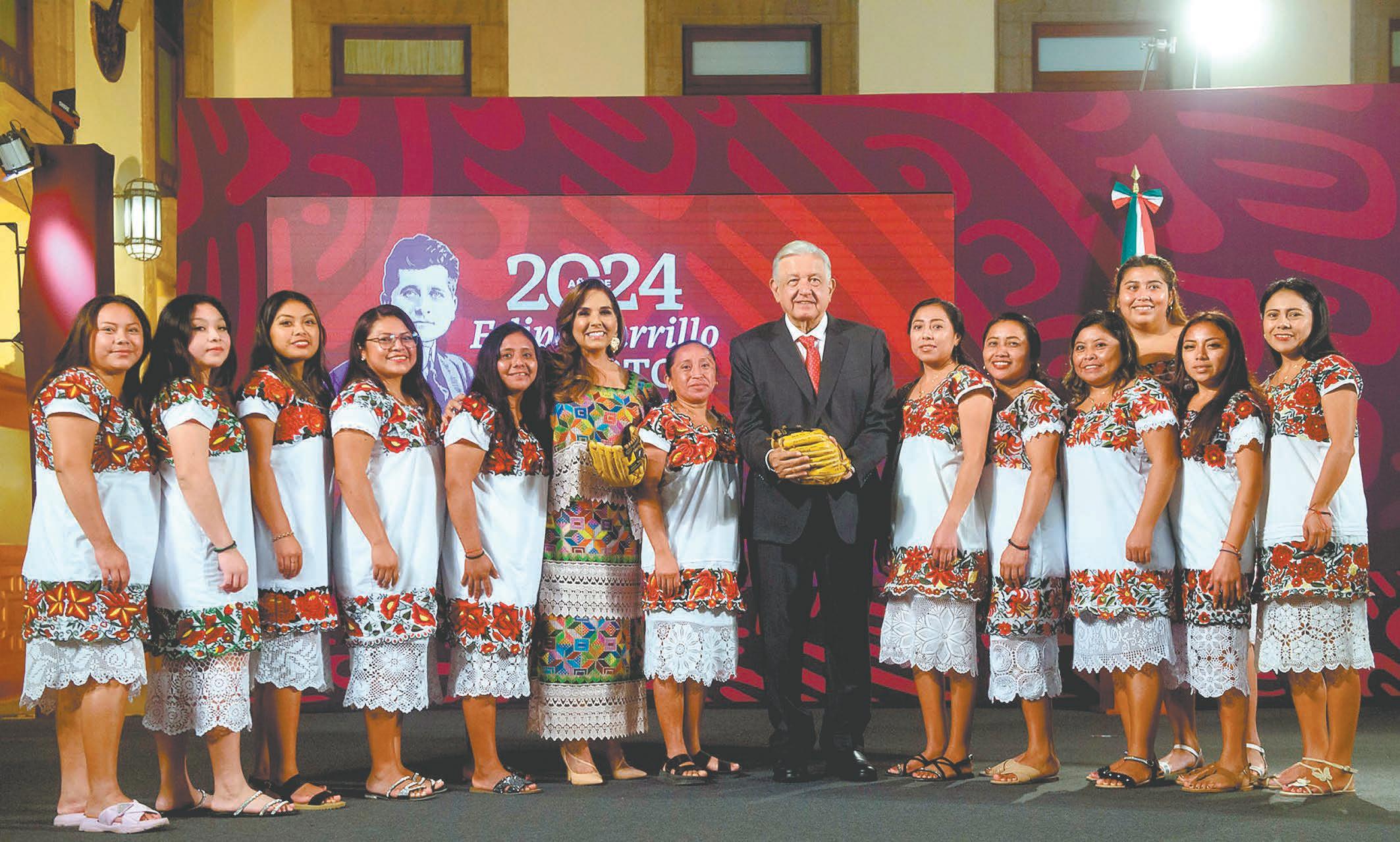 Diablillas de Hondzonot son homenajeadas por AMLO en la Mañanera Ciudad 15
