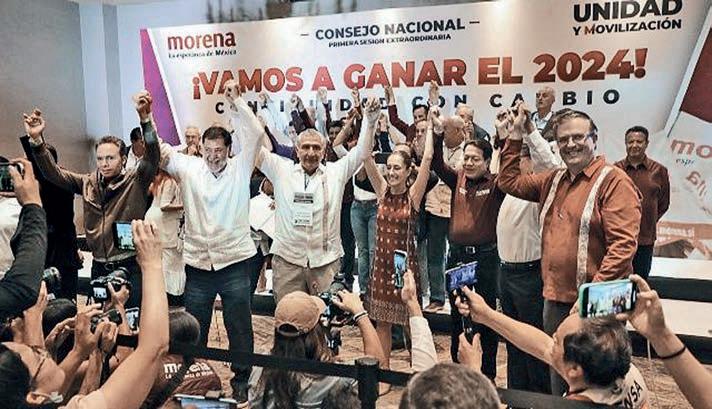 LA exjefa de Gobierno de la capital del país destacó que en el movimiento que encabeza prevalece la unidad y, prueba de ello, es que la acompañarán durante tres meses de proselitismo Marcelo Ebrard, Adán Augusto López, Ricardo Monreal, Gerardo Fernández Noroña y Manuel Velasco, quienes disputaron la nominación presidencial. La candidata anticipó que cada semana dará una propuesta, la primera será sobre seguridad y comenzará en Ciudad Juárez, Chihuahua.- (Cuartoscuro)