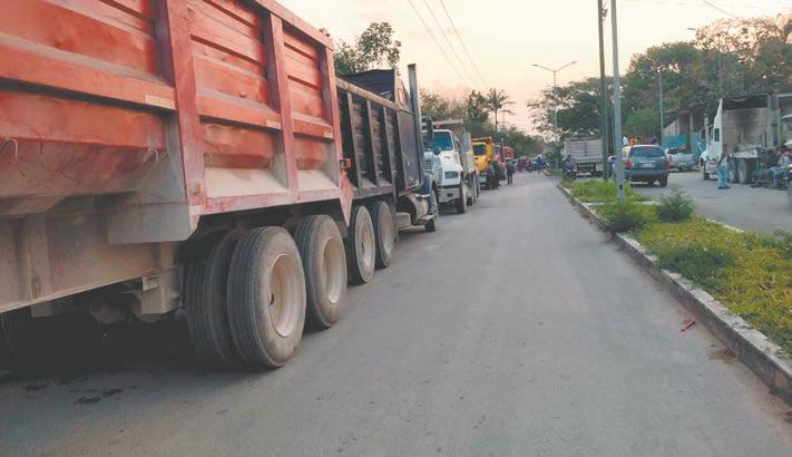 SE formó una fila de 30 camiones que llevaban parte de las mil 300 toneladas de basura que se generan al día en Cancún, cuyos choferes casi se agarran a golpes con los manifestantes. Los quejosos dicen que son más de 70 personas afectadas económicamente.- (Mario Hernández)