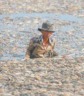 La imagen más espectacular de estas condiciones meteorológicas extremas que golpean el país sucedió en la provincia meridional de Dong Nai (foto), donde cientos de miles de peces aparecieron muertos en un embalse.