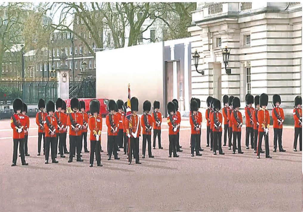Guardias franceses participaron a su vez en el cambio de guardia en Londres, ante el Palacio de Buckingham, resi-