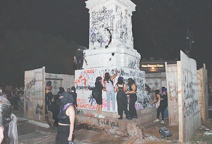 Otras participaron en pintas de monumentos, es decir, iconoclasia, en la que expresaron inconformidades sociales. También