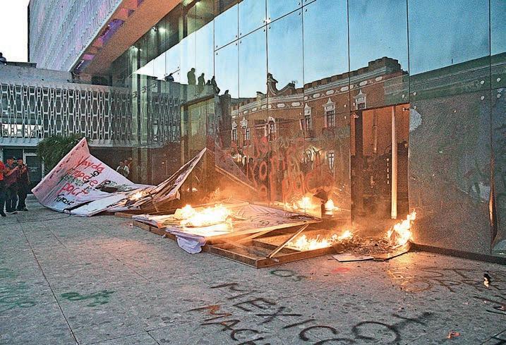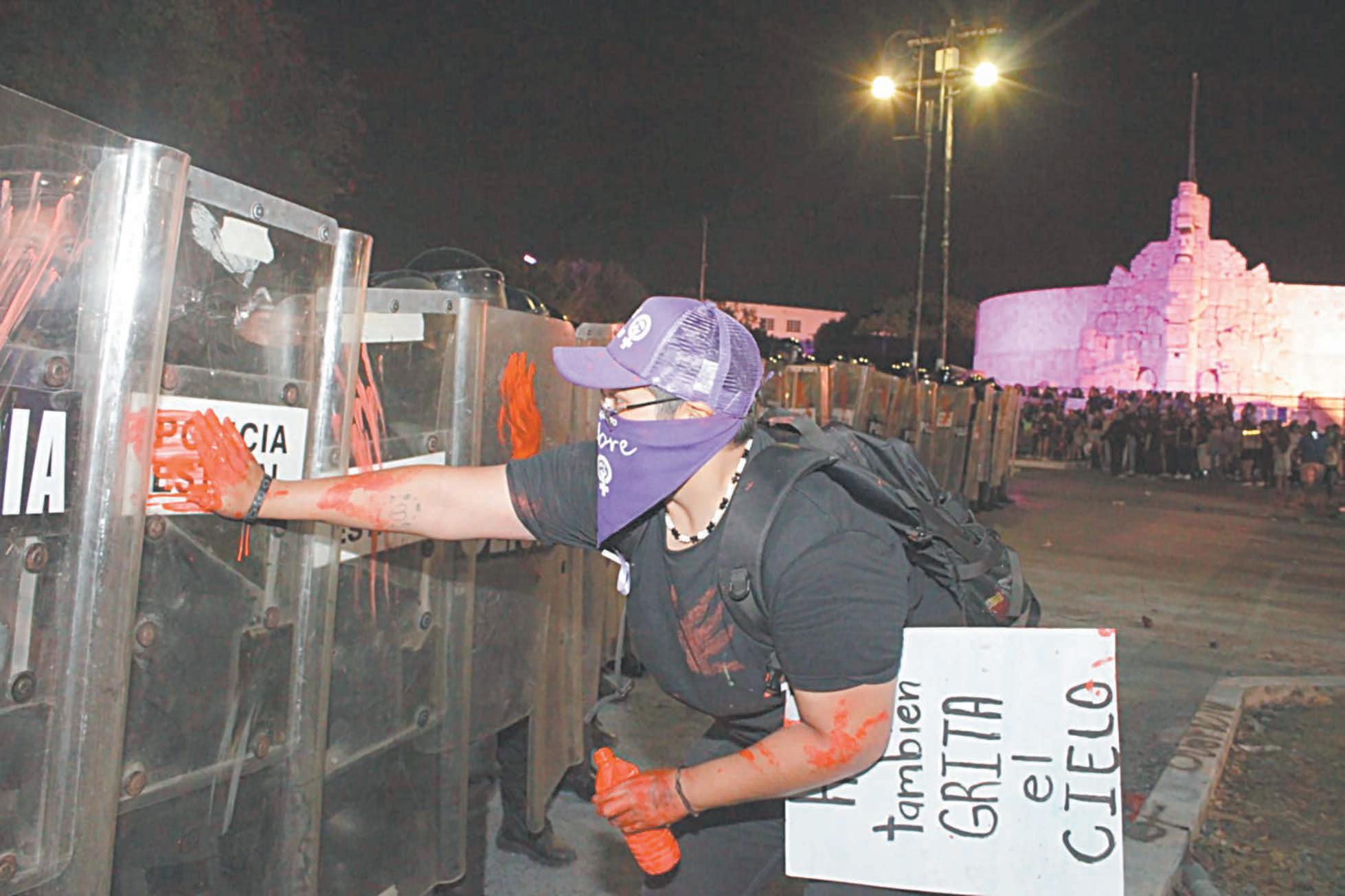 En videos compartidos se puede ver a las mujeres alrededor del fuego, sobre todo alrededor del Palacio Nacional, donde además pintaron las vallas protectoras con frases como “protegen más a los monumentos que a las mujeres”.