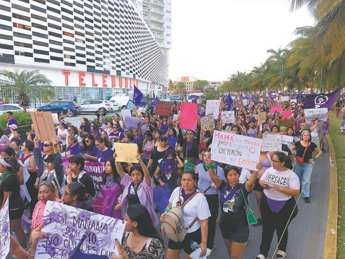 Mujeres de todas las edades y colectivos marcharon en Cancún para exigir respeto a sus derechos y gritando consignas contra los tres niveles de Gobierno por las víctimas de feminicidio y de desaparición en el Estado / Morenistas playenses de hueso colorado repudian a los chapulines que llegaron del PAN y PRD / Feministas acusan a José Luis Chacón de ser un presunto deudor alimentario