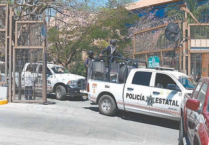 granaderos apiñados alrededor del Palacio de Gobierno Estatal, donde las manifestantes prendieron varias fogatas en honor a las víctimas de feminicidios.