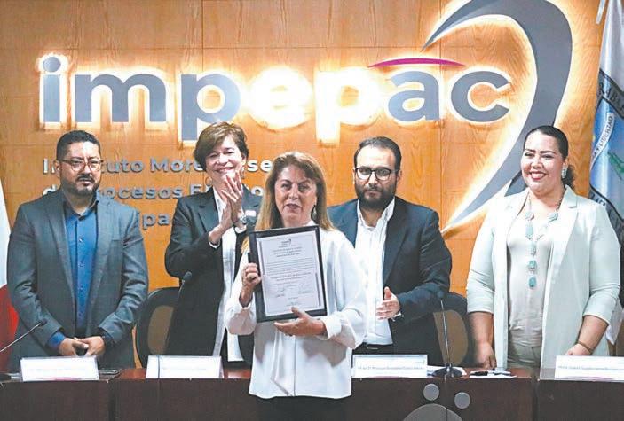 En Morelos, Margarita Gonzá lez Saravia, de la alianza Sigamos Haciendo Historia -Morena, PT y PVEM-, recibió la constancia de mayoría que la acredita como Go bernadora electa, en una de las últi mas sesiones extraordinarias del día.