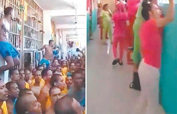 sobre la situación de las cárceles y el descontento por los programas de Gobierno que no han aportado ninguna solución a su situación jurídica, añadió el Observatorio. Las imágenes difundidas por el Observatorio dejan ver a las mujeres en uno de los pasillos del INOF, donde protestaban haciendo sonar botellas plásticas o cualquier artículo que pudiera hacer ruido. En cambio, en una cárcel de varones que no identificó, los presos congregados y apretados en los pasillos entonaban una canción. (Agencias)