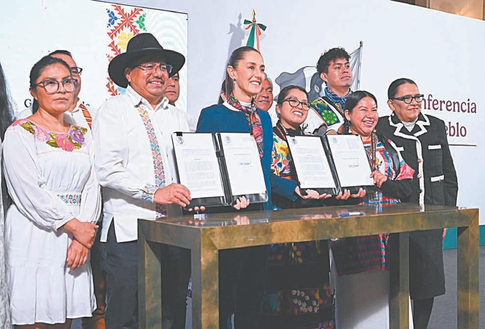 “Firmamos dos decretos: Uno el decreto que instruye para la publicación en el Diario Oficial de la Federación, la traducción de la reforma constitucional que da derechos plenos a los pueblos y comunidades indígenas y afromexicanas”, destacó la Mandataria federal en su conferencia matutina de ayer en Palacio Nacional.