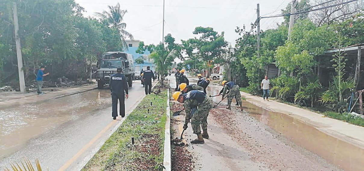 Por ello, la institución colabora con la titular de Asuntos Intergubernamentales y Participación Social de la presidencia, Leticia Ramírez Amaya, en una brigada de limpieza a las edificios afectados del puerto.