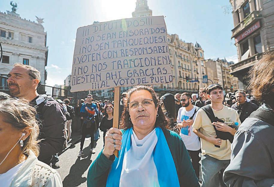 educación y, en especial, en las universidades públicas, el camino del ascenso social”. Fernández de Kirchner apuntó en particular contra gobernadores de provincias de su fuerza política dando a entender que, direccionando el voto de legisladores que les responden, intentarían obtener favores del Gobierno nacional. Para que el Congreso argentino revoque el veto presidencial a una ley necesita el voto de dos tercios de los legisladores presentes en cada Cámara legislativa. (Agencias)
