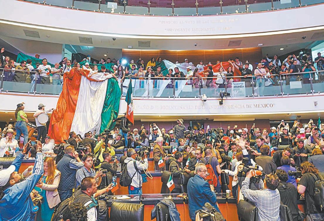 Así, tomaron terreno en el Patio del Federalismo y, poco a poco, se dirigieron a todos los accesos que rodean la Cámara Alta. Para las 16:33 horas, decenas de civiles y trabajadores del Poder Judicial irrumpieron la sesión ordinaria de ayer.