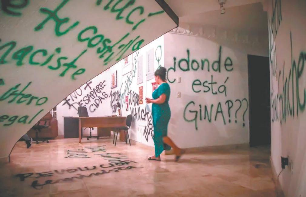 Los manifestantes que entraron al recinto fueron rociados con extintores, con el fin de detener su paso, pero insistieron en querer entrar, derribando puertas de vidrio y madera.