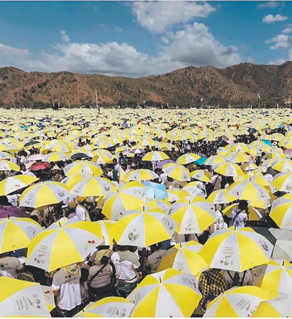 Aunque otras misas papales han congregado a millones de personas en países más poblados, y seguramente habría ciudadanos de otras nacionalidades entre la multitud, se cree que la asistencia de ayer en el pequeño Timor Oriental es la mayor de la historia para un acto papal, en términos de proporción de la población. El parque de Tasitolu era un mar de paraguas blancos y amarillos -los colores de la bandera de la Santa Sede- mientras los timorenses se protegían del sol de