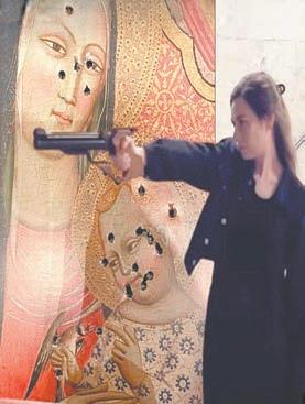 Una concejala suiza pidió disculpas y, al parecer, ha solicitado protección policial por amenazas recibidas tras disparar con una pistola deportiva contra el cartel de una subasta de un cuadro de una Virgen con un niño Jesús del siglo XIV y publicar imágenes de sus rostros acribillados a balazos en las redes sociales.