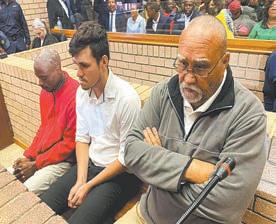 Zachariah Johannes Olivier, el dueño de la granja, junto con el supervisor Andrian Rudolph, de Wet, y el empleado William Musora, enfrentan dos cargos de asesinato premeditado, un cargo de intento de asesinato y posesión de arma de fuego sin licencia. Musora, ciudadano de Zimbabue, también está acusado de estar en el país ilegalmente. Se alega que, en agosto, un camión de una compañía láctea dejó productos posiblemente vencidos en la granja de Olivier, lo que llevó a que las mujeres, Locadia Ndlovu y Maria Makgatho, entraran en el terreno para tratar de recogerlos. Ambas fueron asesinadas a tiros. Un hombre que iba con ellas fue herido y logró llegar gateando a una carretera cercana para pedir auxilio. El hombre reveló lo ocurrido a la Policía, que halló los cuerpos de la mujer en el encierre de puercos. (Agencias)