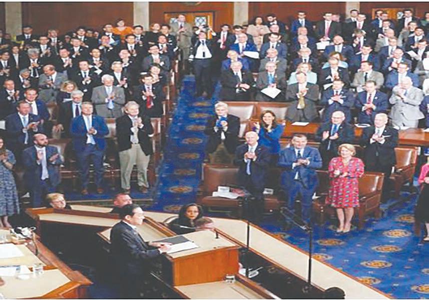 El Premier de Japón fue ovacionado por la Cámara y el Senado en su visita a Estados Unidos. (AP)