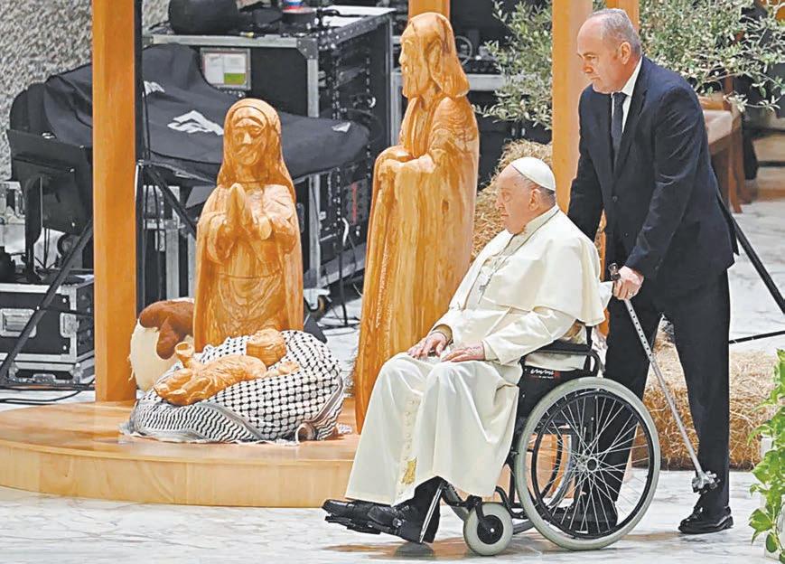 El Papa Francisco presidió su audiencia general semanal ayer junto a un belén, elaborado por artesanos palestinos, que carecía de su elemento más llamativo: un pesebre cubierto con una kufi ya , el pañuelo palestino, sobre el cual reposaba el Niño Jesús.