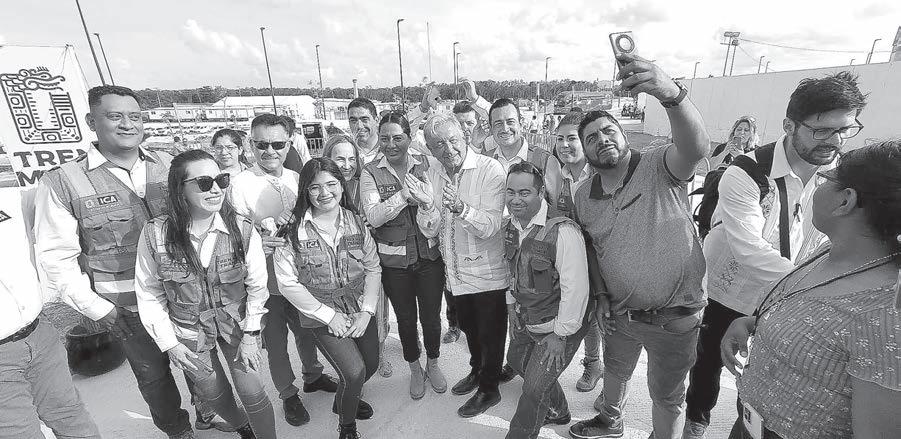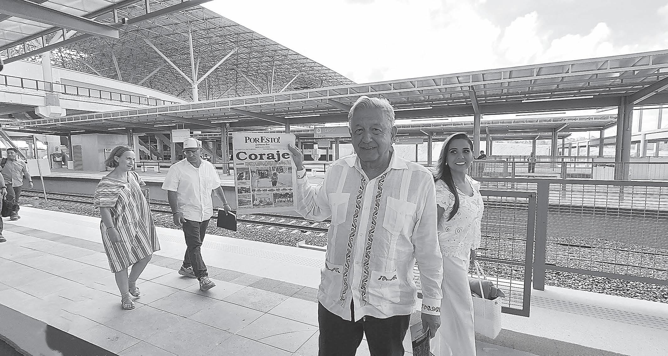 AMLO arribó en el Tren Maya a BJ, donde dijo que las obras van bien; se reunió con los encargados.- (Rodolfo Flores)