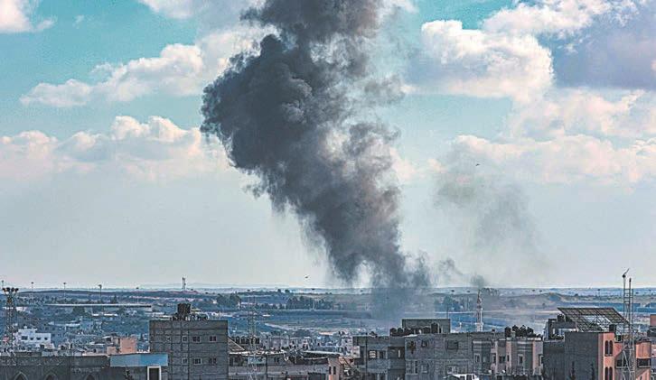 RAFAH.- El Ejército israelí bom bardeó ayer la Franja de Gaza y or denó a la población palestina evacuar más barrios de la localidad de Rafah, donde la ONU advierte de una ca tástrofe “de proporciones épicas” en caso de operación militar masiva. En Rafah, en el extremo Sur de la Franja de Gaza, en la frontera con Egipto, se produjeron intensos bom bardeos israelíes, afirmaron testigos. Las imágenes muestran columnas de humo sobre la ciudad. Los bombardeos golpearon también zonas más al Norte de este territorio palestino, reportaron testi gos, en un momento en que la ONU advirtió que la ayuda humanitaria está bloqueada desde que las tropas israelíes entraron el lunes en el Este de Rafah y cerraron el paso. Al menos 21 personas murieron