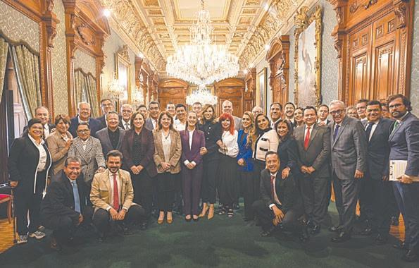 En el encuentro, que se llevó a cabo en Palacio Nacional y duró cerca de dos horas, participaron al menos 24 gobernadores, todos de partidos de la cuarta transformación, así como tres mandatarios electos; de Chiapas, Eduardo Ramírez; de Veracruz, Rocío Nahle y de Puebla, Ale- jandro Armenta. Éste último calificó el encuentro como una muy buena reunión con el sector salud federal.