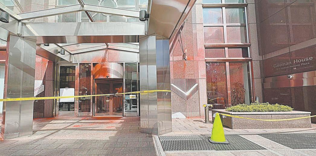 También se salpicó con pintura roja la fachada de edificios del consulado alemán, así como la Misión Permanente de Observación del Estado de Palestina ante las Naciones Unidas, en cuyo exterior