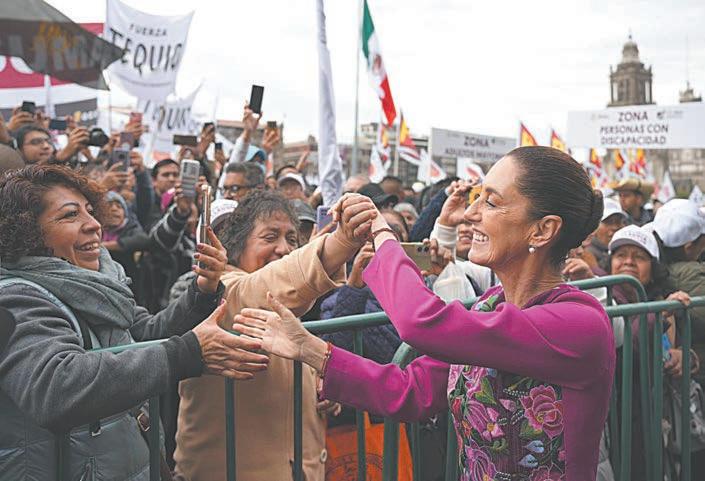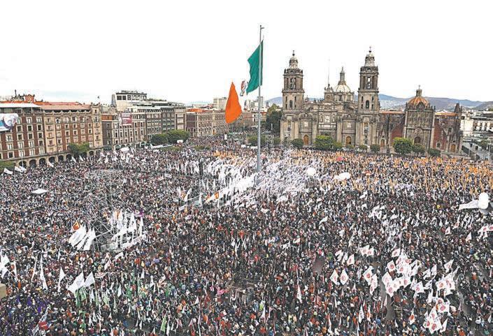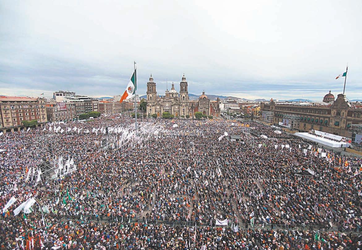 ANTE 350 mil mexicanos -según cifras oficiales- que llenaron el Zócalo, corazón de la CDMX, la Presidenta destacó que cada acción suya está orientada a fortalecer los derechos y las condiciones de los ciudadanos. Con un enfoque firme en la equidad y el respeto, dijo, se están materializando proyectos que mejoran la vida de millones: apoyo a adultos mayores, becas, mejor atención en salud y más oportunidades para el campo. Además, las mujeres y los jóvenes ocupan un papel central y, así, México marcha con seguridad, con un porvenir prometedor, renovado, que se basa en el humanismo, respaldado por la solidaridad del pueblo.- (POR ESTO!)