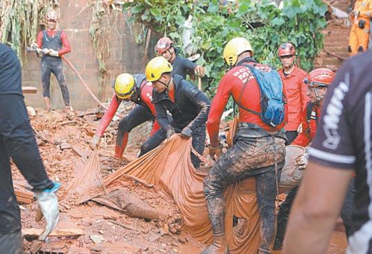 Deslizamientos de tierra provo cados por lluvias torrenciales dejaron al menos diez muertos y una persona desaparecida en el estado brasileño de Minas Ge rais (sureste), según el informe más reciente de bomberos ayer. Nueve personas murieron en la ciudad de Ipatinga, de 227 mil habitantes donde cayeron 80 milímetros de lluvia en una hora durante la noche del sábado al domingo, según la alcaldía.