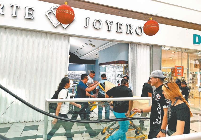 EL día se tornó violento en el centro comercial, luego que cuatro integrantes de una banda de ladrones, amagaron con matar a las trabajadoras del negocio para que entregaran alhajas y relojes de alta gama. Una vendedora fue trasladada al hospital, al sufrir un colapso nervioso. Por ser fin de semana, el lugar se encontraba lleno de gente.- (Mario Hernández)