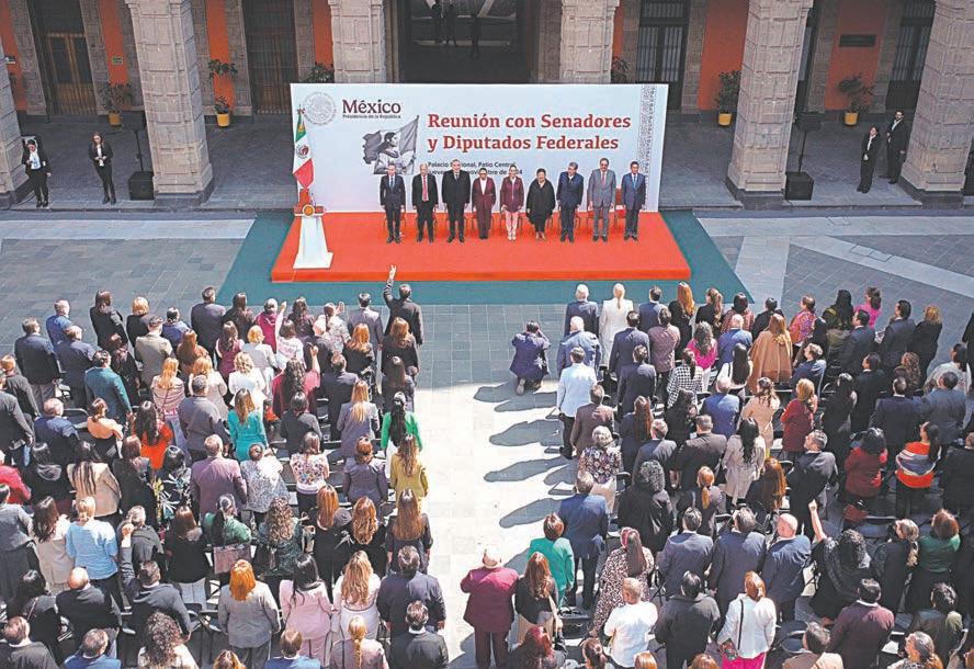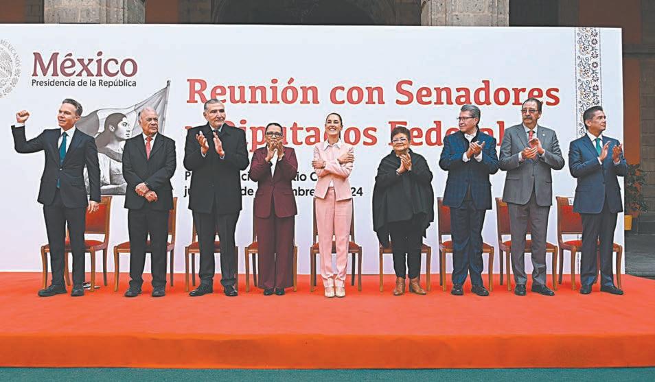 CIUDAD DE MÉXICO.- La presidenta Claudia Sheinbaum Pardo sostuvo ayer una reunión en Palacio Nacional con los diputados y senadores de Movimiento de Regeneración Nacional (Morena), Partido del Trabajo (PT) y Partido Verde Ecologista de México (PVEM), para reconocerles su trabajo en la actual Legislatura. Asimismo, los llamó a tener unidad por el bien del país y les pidió no separarse del pueblo, mantener cercanía con los ciudadanos y trabajar en territorio.