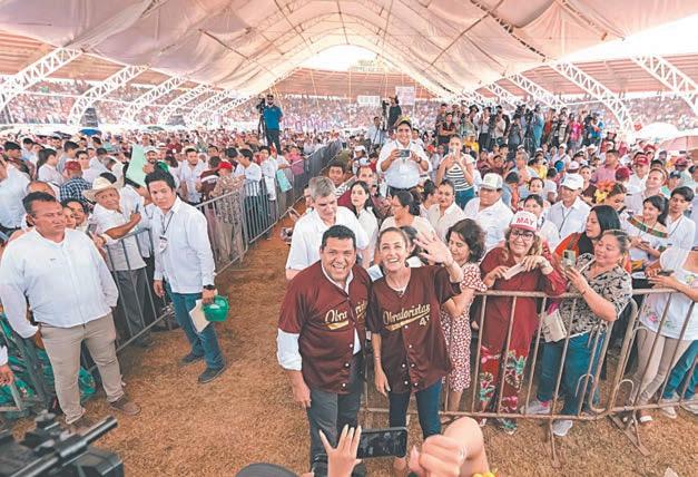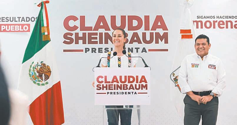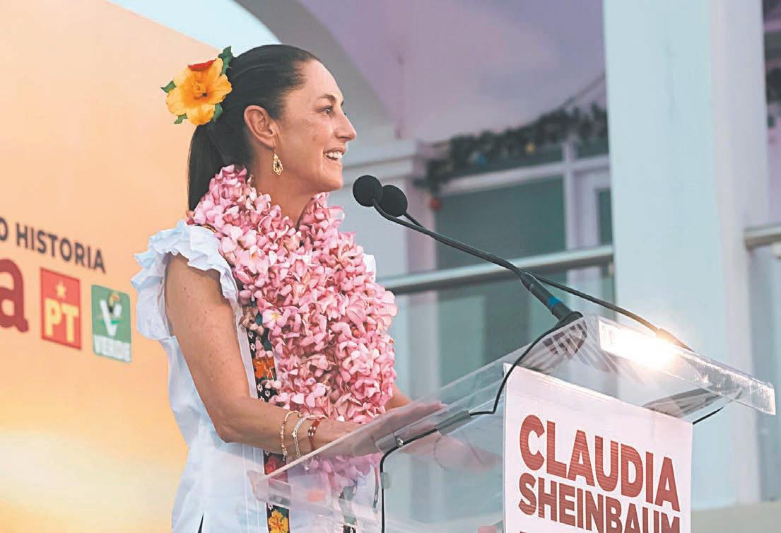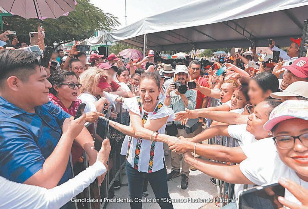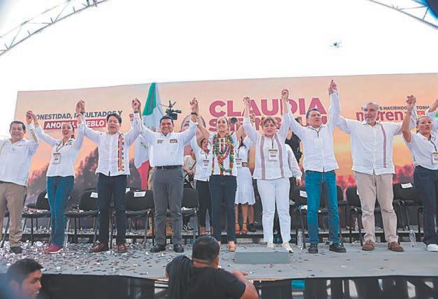 Asimismo, aseguró que a su llegada a la Presidencia se seguirá gobernando con los principios de la 4T, lo que significa continuar con apoyos como la pensión para las y los adultos mayores; consolidar obras como el Tren Maya; la ampliación de puertos como el de Coatzacoalcos, entre otros, pero además puntualizó que se avanzará en la transformación implementando programas como el apoyo económico mensual a mujeres de 60 a 64 años; la creación de una beca universal para niños y niñas de educación pública; la creación de 300 mil espacios más en educación superior con nuevas sedes por todo el territorio nacional de la Universidad de la Salud y la Rosario Castellanos, centros universitarios creados en su gestión como Jefa de Gobierno de la Ciudad de México; fortalecer el sistema de salud; seguir aumentando el salario mínimo, entre muchas otras acciones.
