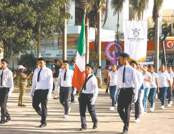 El magno desfile cívico militar arrancó en punto de las 10:00 horas con el izamiento de la bandera y la Canto de Bandera por parte de los elementos de las Fuerzas Armadas de México.