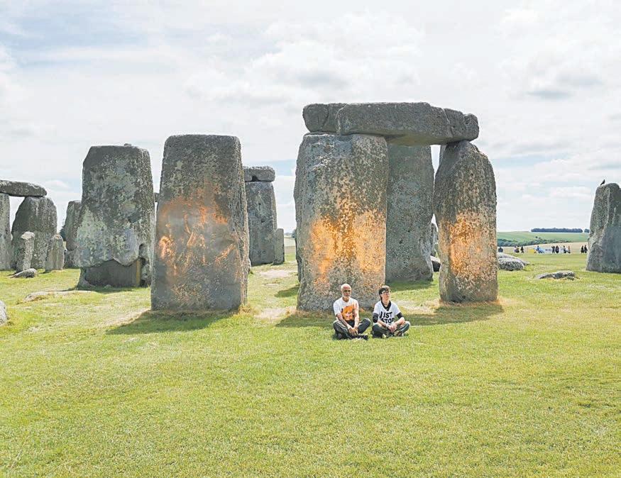 Dos manifestantes climáticos fueron detenidos ayer por rociar pintura naranja sobre el antiguo monumento de Stonehenge, en el Sur de Inglaterra.