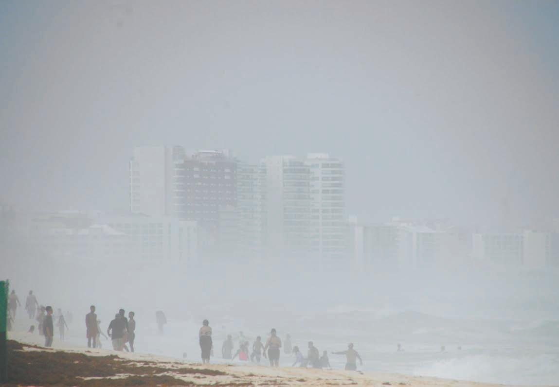 EL fenómeno hidrometeorológico generaría torrenciales aguaceros en Quintana Roo, Yucatán y Campeche. A pesar de la situación climática que prevalece, decenas de visitantes y locales acuden a las playas a nadar, poniendo en riesgo sus vidas.- (Mario Hernández)