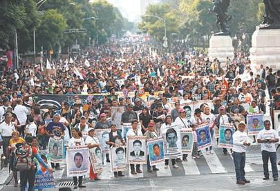 nores que portaban una manta de colores en la que se podrían leer: Todos somos Tila y No hay caminos hacia la paz, la paz es el camino En la marcha destacó la voz de los infantes y adolescentes con un tendedero de dibujos luego de