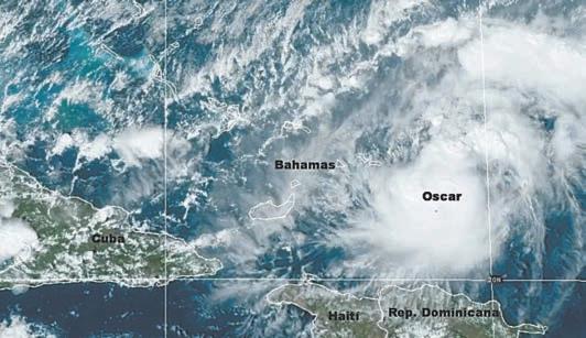 MIAMI.- El Huracán Oscar se formó ayer frente a las costa de las Bahamas, informó el Centro Nacional de Huracanes de Estados Unidos (NHC, por sus siglas en inglés), con sede en Miami. El Gobierno de Bahamas emitió una alerta para las islas británicas de Turcas y Caicos y el Sureste de las Bahamas, mientras el Instituto de Meteorología (Insmet) de Cuba difundió un aviso de huracán para las provincias orientales de Guantánamo, Holguín y Las Tunas. Los vientos máximos sostenidos de la tormenta eran ayer de 130 kilómetros por hora, con ráfagas más fuertes. “En dependencia de la trayectoria comen-