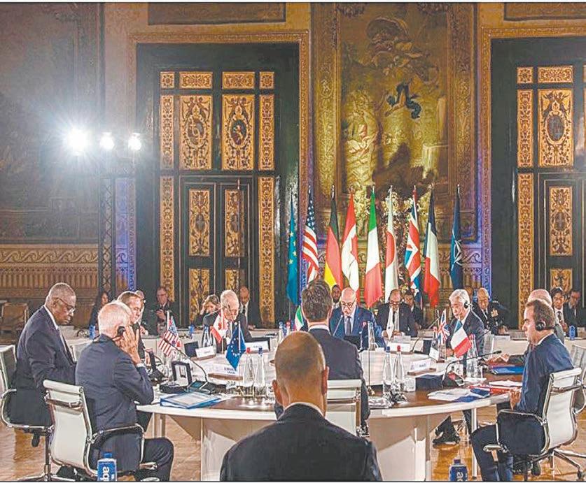 La reunión de los titulares de Defensa de Estados Unidos, Canadá, Alemania, Francia, Italia, Reino Unido y Japón centró la atención, además, en la escalada bélica en Oriente Medio. También estuvieron presentes el jefe de la diplomacia europea, Josep Borrell, y el secretario general de la OTAN, Mark Rutte. (Agencias)