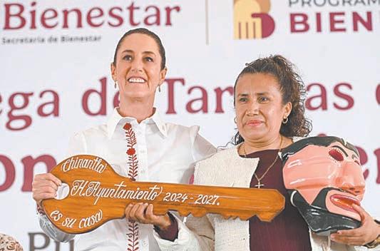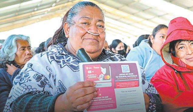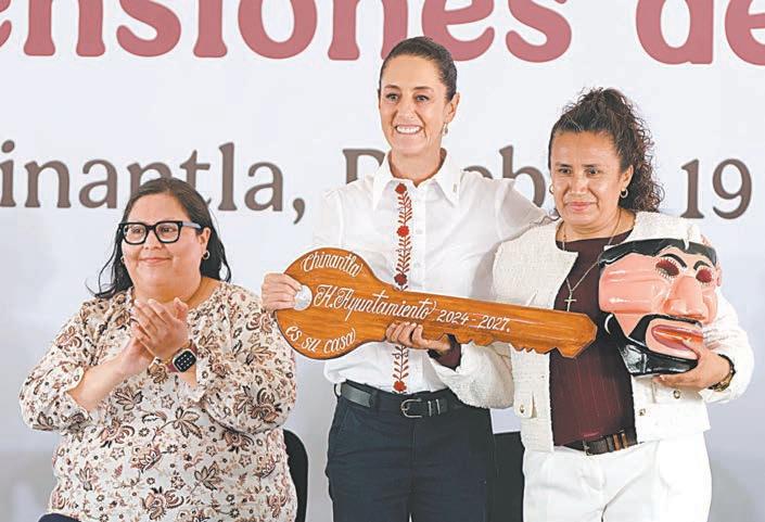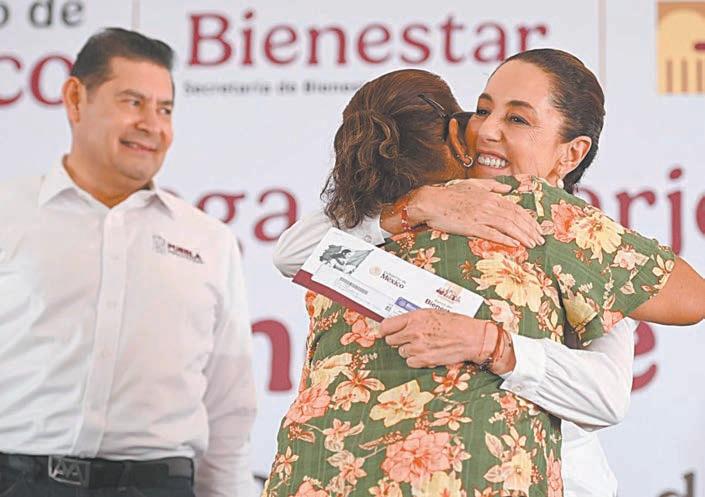 La Jefa del Ejecutivo federal encabezó en Chinantla la entrega de 175 tarjetas del Banco del Bienestar a beneficiarias de la Pensión Mujeres Bienestar, apoyo que en todo el estado de Puebla se otorgará a 45 mil 818 mu-