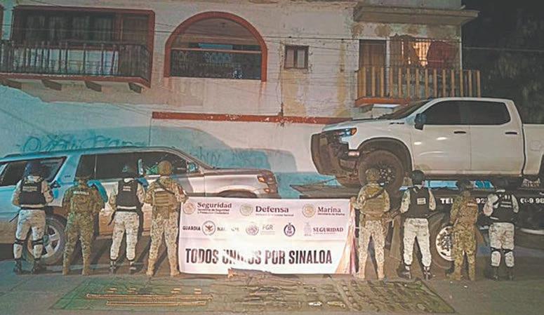 CULIACÁN, Sin.- En los municipios de Culiacán y Mazatlán Fuerzas federales y estatales lograron detener a siete civiles armados, a los que les aseguraron un arsenal, compuesto por 22 armas de fuego, entre ellas dos ametralladoras, granadas y 23 vehículos de diversas características, dos de ellos blindados.