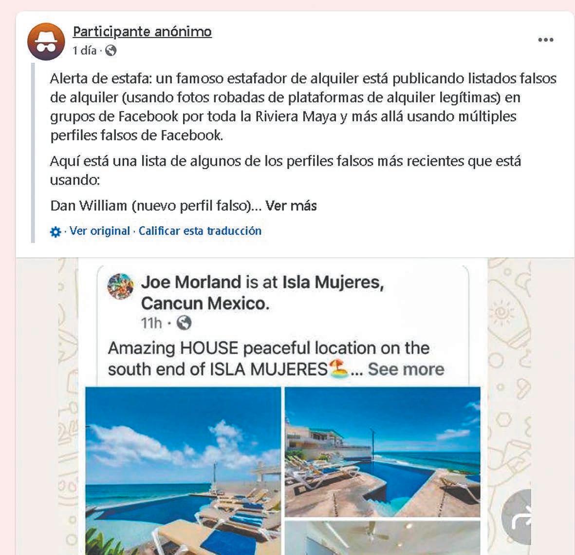 VIAJEROS afectados, en conjunto con isleños, solicitaron la ayuda de la Policía Cibernética para ubicar a delincuentes que operan con impunidad. La organización exhibe cuentas de plataformas digitales con datos de extranjeros.- (O. López)