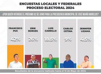 La laguna Chacmuchuch, de donde se extrae gran cantidad de pescados y mariscos, está contaminada con metales pesados debido al escurrimiento de lixiviados por el mal manejo del antiguo relleno sanitario / Estefanía Mercado, candidata de Morena a la Alcaldía de Solidaridad, acusa al PRIAN por el asesinato de un activista / Califican empresarios el debate presidencial como intrascendente y un circo