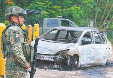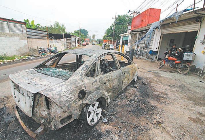VILLAHERMOSA, Tab.- La madrugada de ayer se registró la quema de cuatro vehículos y una cafetería, así como el hallazgo de un cuerpo y la aparición de dos narcomantas con amenazas en contra de policías locales en varios puntos del estado de Tabasco. Tras la detención de Carlos Tomás “N”, alias El Lic , en Pue bla, presunto integrante de Barredora , confirmada por el de legado de la Fiscalía General de la República (FGR) en Tabasco, grupos delincuenciales atacaron vehículos y establecimientos, sin que se reportaran detenidos. Uno de los automóviles que mados fue reportado en la zona Flores del Trópico de la ranche ría Samarkanda , del municipio de Centro, así como la quema de una cafetería situada en la Ciu dad Deportiva de Villahermosa. Otro de los vehículos fue quemado alrededor de las 7:00 horas de ayer a la altura de la caseta de la carretera Villahermosa-Macuspana. De igual manera, se reportó el hallazgo de una persona sin vida, cuyo cuerpo fue abandonado junto a una cartulina con amenazas en la ranchería González También aparecieron dos narcomantas, de las cuales, una fue colocada en el Centro Administrativo de Petróleos Mexicanos (PEMEX), con amenazas.