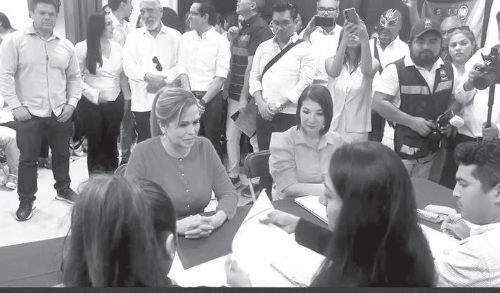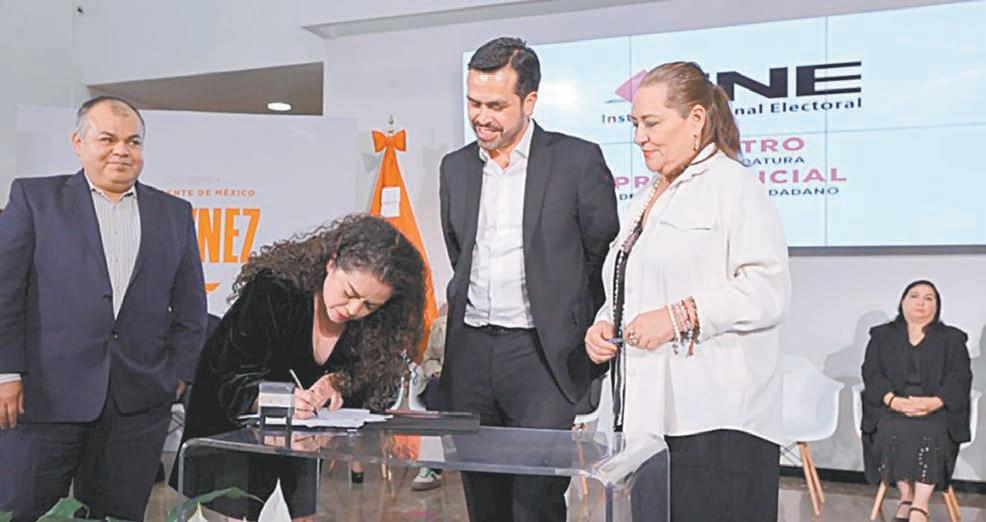Al inicio del evento, la conseje ra presidenta del Instituto Nacional Electoral (INE), Guadalupe Taddei Zavala, dio la bienvenida a Jorge Álvarez Máynez durante la presen tación de la solicitud de candidatura a la Presidencia de la República.