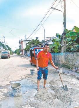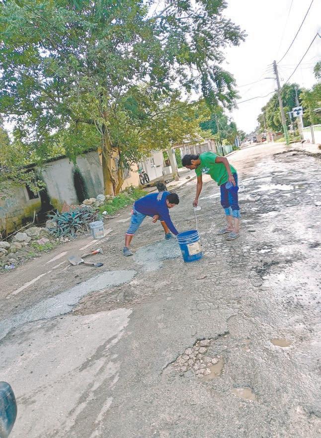 Mototaxistas toman la iniciativa y tapan baches, en Kantunilkín