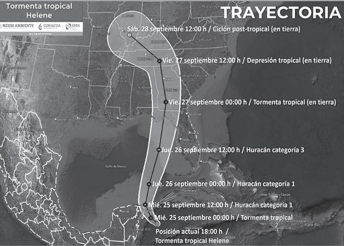 Helene , que se encuentra en el Caribe, va a intensifi carse rápidamente a su paso por las aguas del Golfo de México, indicó el Centro Nacional de Huracanes (NHC, por sus siglas en inglés).