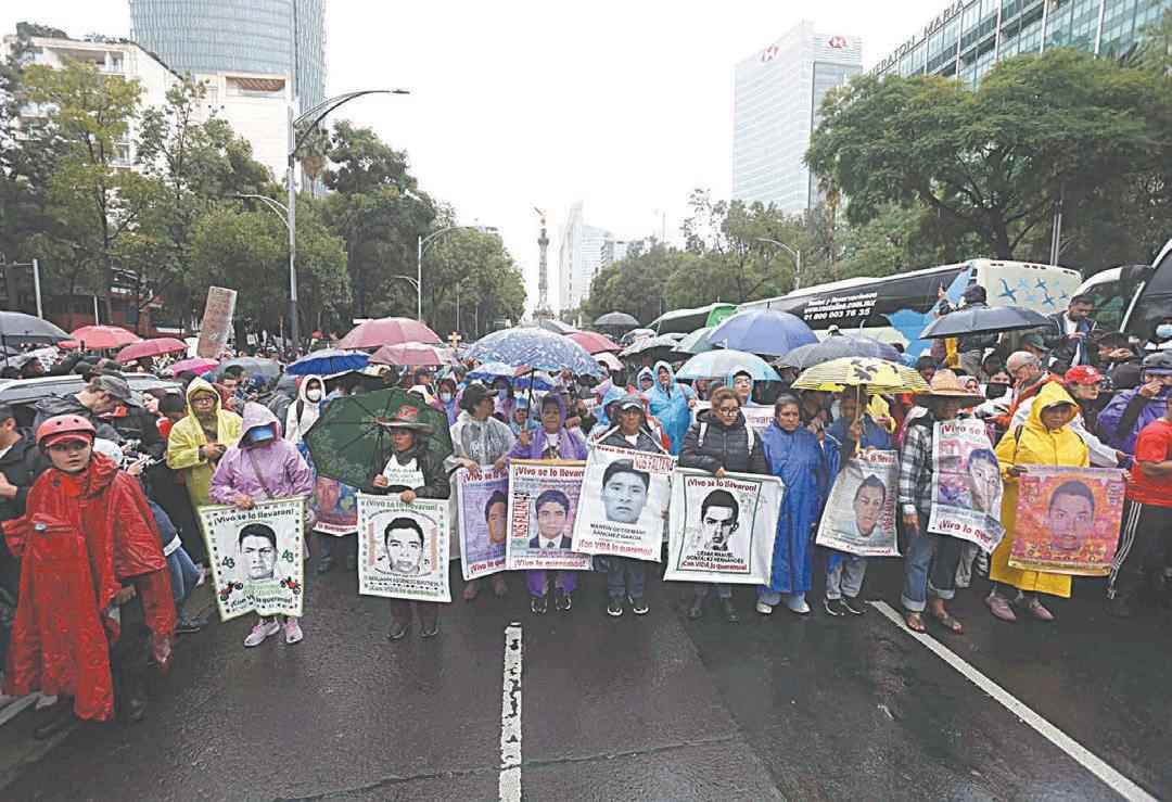 Frente a miles de personas que los acompañaron en toda la marcha desde el Ángel de la Independencia, Hilda Legideño, madre de Jorge Antonio Tizapa, dijo que los padres y madres de los normalistas “seguiremos adelante, nos asiste la razón, hay pruebas, hay informes que demuestran la participación de los militares. Exigimos que se entreguen los folios (militares) faltantes donde está toda la información de lo que ocurrió esa noche”. Igualmente, pidió a nombre de las familias que regrese el Grupo Interdisciplinario de Expertos Independientes (GIEI), “porque sólo ellos nos conducirán hacia el cami-