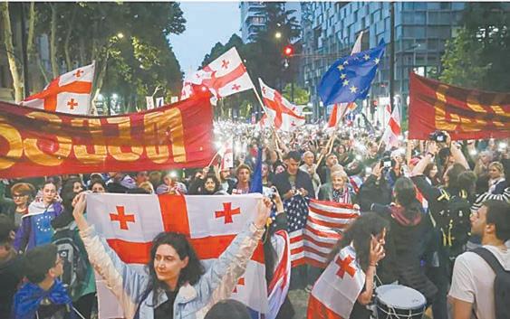 mutuamente en discursos en la ceremonia por el Día de la Independencia de Georgia. Grandes protestas han paralizado en varias ocasiones la capital, Tiflis, conforme avanzaba la tramitación de la propuesta de ley.