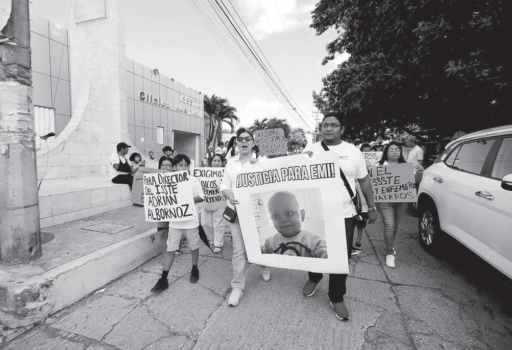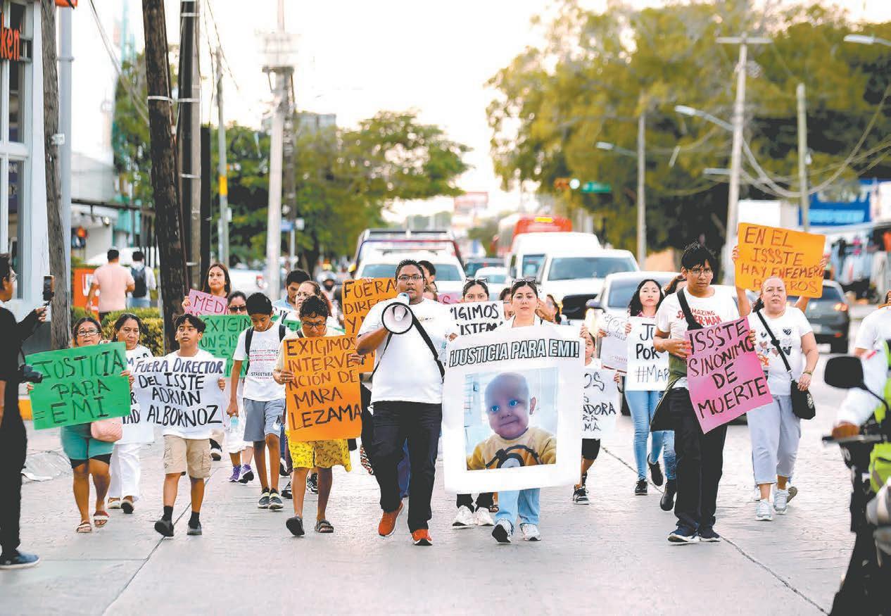 ALEXIS Caamal Aké y su esposa Tania, padres de Gabriel Emiliano, marcharon desde la clínica hasta el Palacio Municipal, donde sostuvieron una reunión de una hora y media con Mara