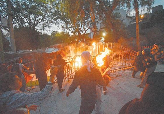 Con mochilas, vestidos de negro y rostro cubierto, los agresores acudieron a la zona y arremetieron contras las vallas metálicas de la zona. Por ello, elementos de seguridad llegaron con equipos de protección, para controlar a los manifestantes, y